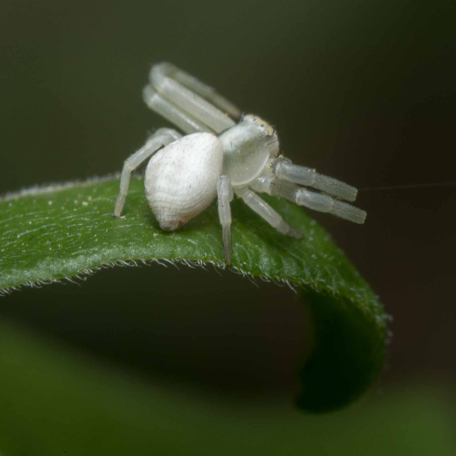 Bei den Weibchen variiert die Färbung des gesamten Körpers zwischen leuchtend gelb, gelbgrün und weiß. Sie können zur Tarnung ihre Körperfarbe aktiv wechseln. Die Seiten des Hinterkörpers tragen häufig zwei rote Längsstreifen.