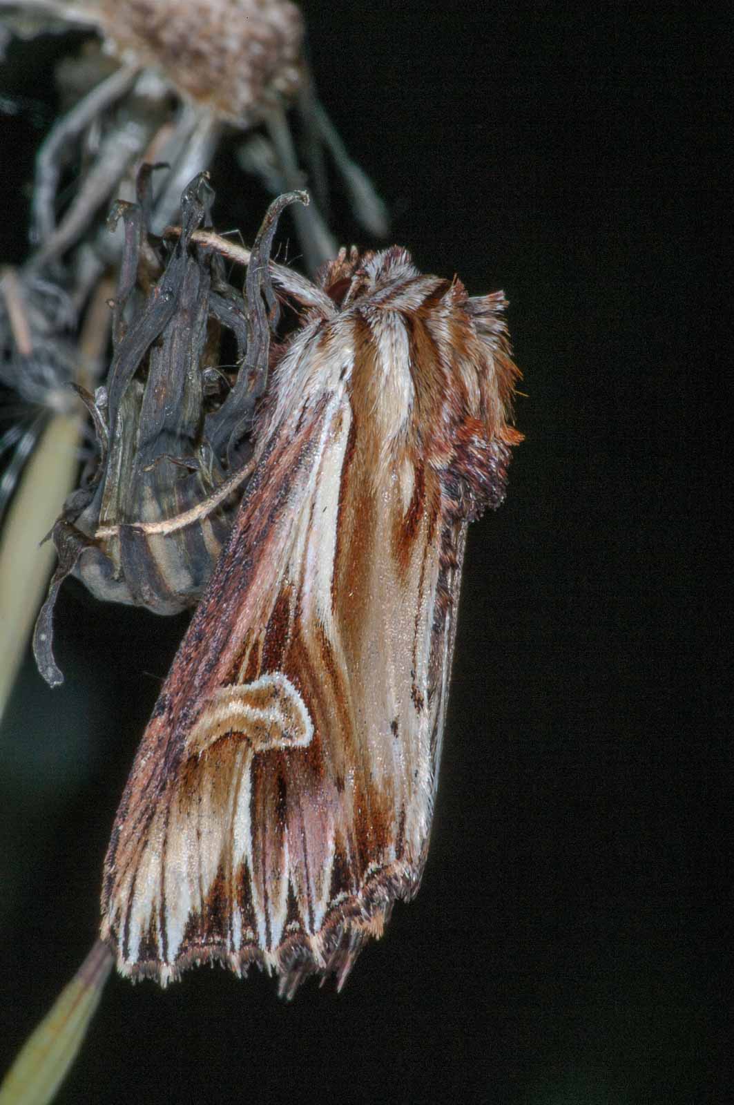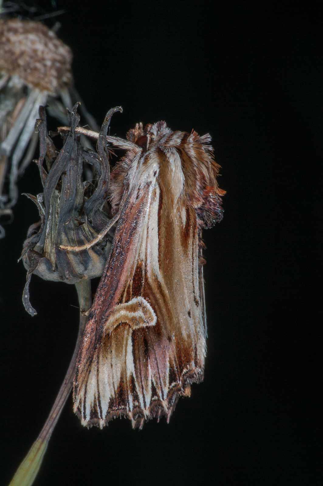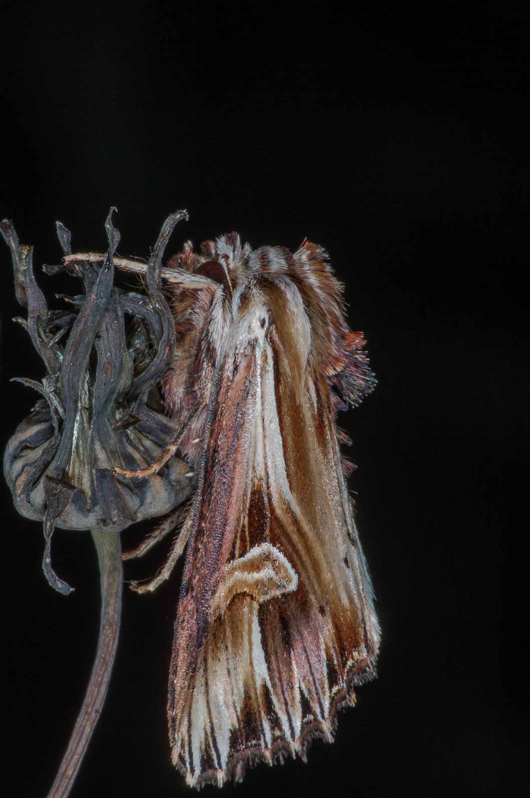 Der Nachtfalter ist dank seiner markanten Vorderflügel unverwechselbar. Diese sind auch namensgebend für die Schmetterlingsart. Die Zeichnung der Flügelränder erinnert an „Zähne“. Die Flügel sind in den Farben bräunlich, weiß und violett gemustert. Die Spannweite beträgt 31–36 mm.