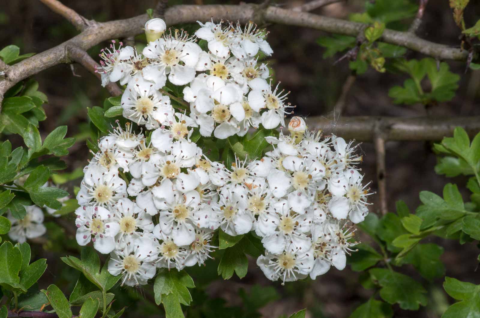Die mitteleuropäischen Weißdornarten […] lieben Sonnenlicht, gedeihen aber auch gut im Halbschatten und kommen in Hecken, Gebüschen, lichten Laub- und Kiefernwäldern sowie Gärten und Parks vor. Sie wachsen als Sträucher oder kleine Bäume, können mehrere Meter hoch sowie bis zu 500 Jahre alt werden und sind stets mit bis zu 2,5 cm langen Dornen bewehrt. Ihre Blätter sind ei- bis rautenförmig, am Grunde keilförmig, schwach bis tief gebuchtet mit drei bis fünf – seltener bis sieben Lappen und meist auch etwas gesägt. Sie blühen im Mai und im Juni meist weiß, seltener rot; die Blüten sind 0,7–1,5 cm breit und riechen auffällig nach Mäuseurin (Definition des Deutschen Arzneibuchs). Die Apfelfrüchtchen reifen im August und September und bleiben oft bis in den Frühling hinein am Baum. Sie sind rot, fast kugelig, 0,7–1,2 cm lang, enthalten 1 bis 3 Kerne, und schmecken säuerlich-süß; das Fruchtfleisch ist gelb und mehlig.