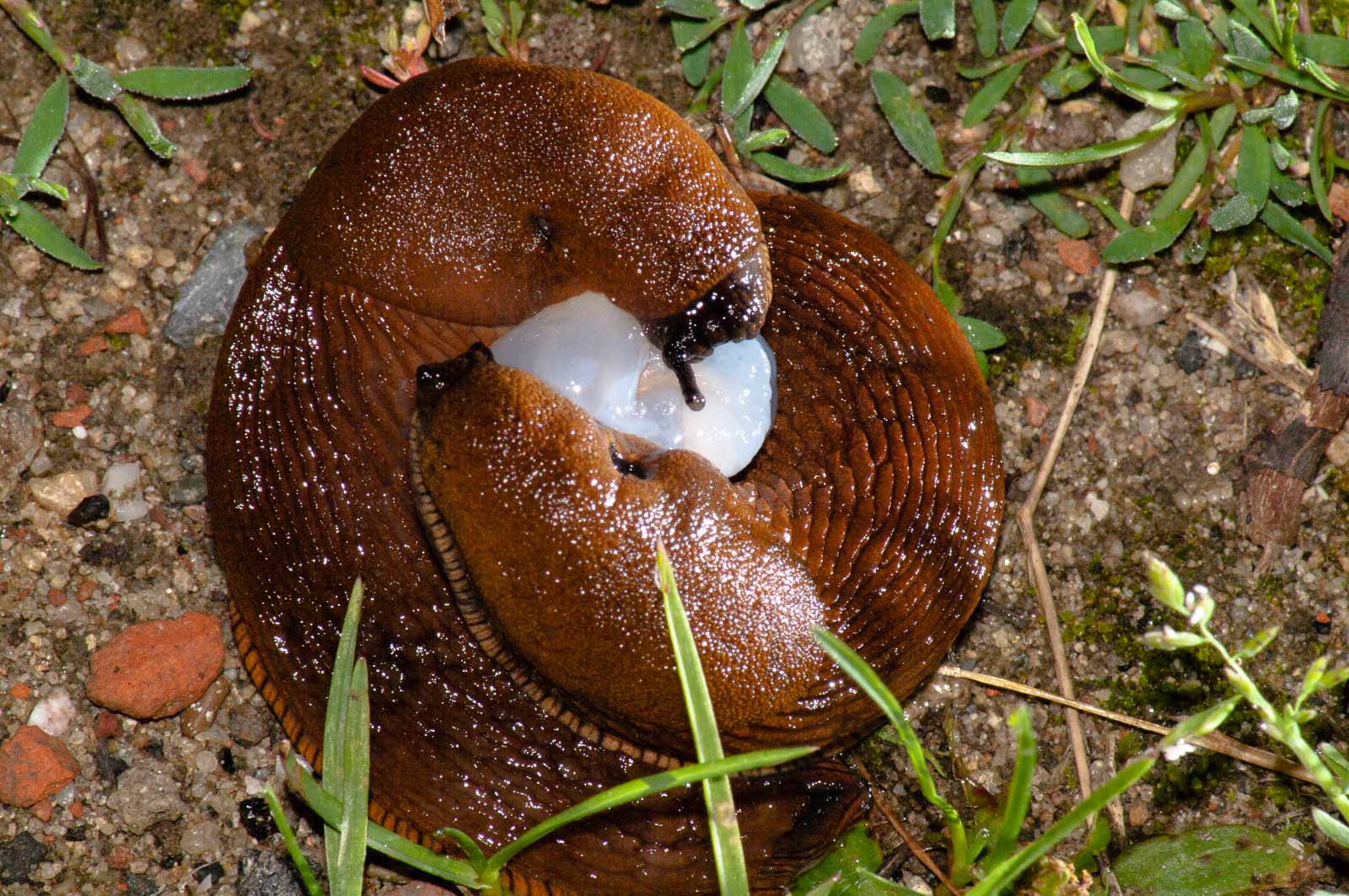 2017-08-14 – NSG Halde Pluto – Rote Wegschneclen (Arionidae) sind unvollkommene Hermaphroditen und brauchen eine Paarung, um fruchtbare Eier legen zu können. Die Haltung erinnert dabei an das Yin und Yang Symbol.